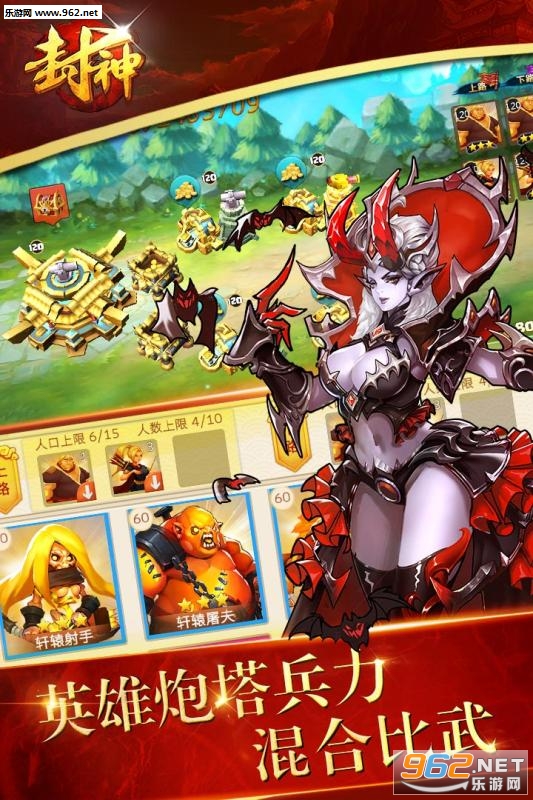 封神英雄,热血集结。风雷双翅震九天的雷震子,三头六臂红菱乾坤的哪吒三太子,至媚至惑的妖王妲己,腰缠万贯的赵公明,广发狗粮的封神情侣土行孙、邓婵玉.....悉数登场,与你共战乱世,叱诧风云。除了英雄的助阵,还有多种类、个性炮塔的配合作战,全方位守护村庄的平安。多兵种冲锋,杀敌陷阵。真正的运筹帷幄之间,决胜千里之外。