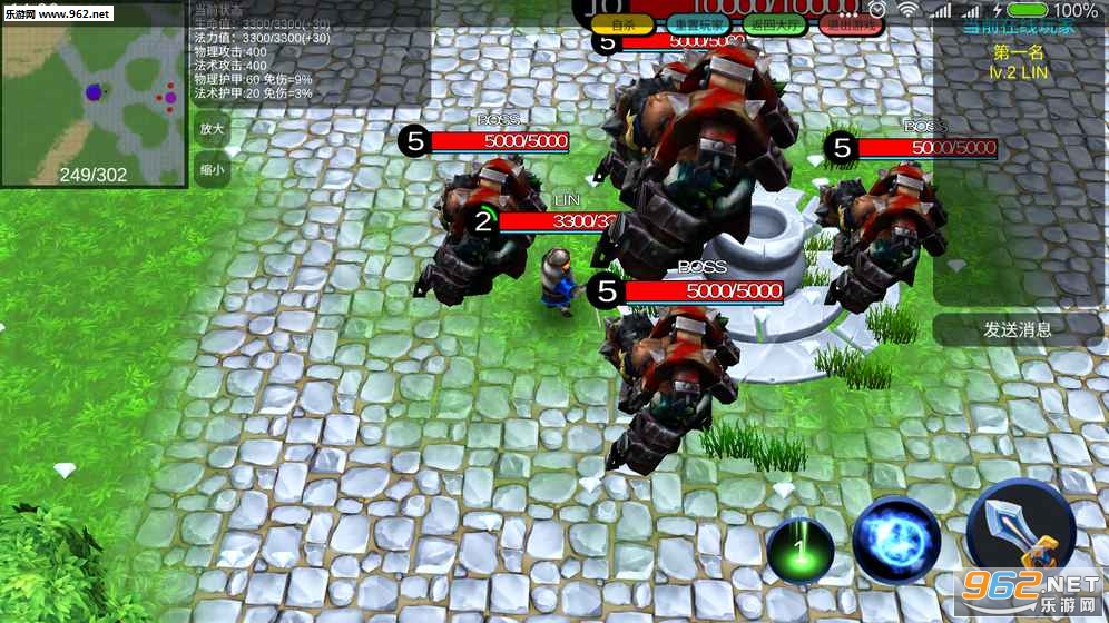 地图中间有20级大BOSS和四个10级中BOSS