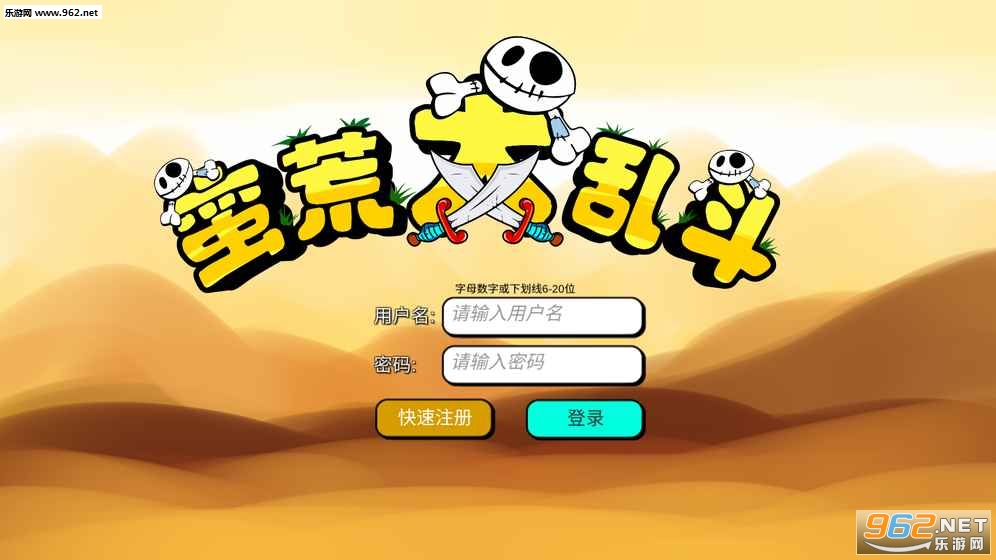 游戏快速注册方式:输入用户名和密码 点击下方的快速注册按钮即可,注册成功后会跳转到昵称页面,昵称填写后不可修改。