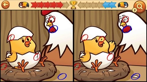 1、简单的操作,你只需要找出图片中的不同,你就可以很快的完成闯关。