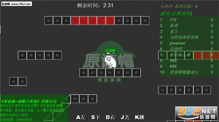 《绿帽大作战网页版》是一款为小伙伴们打造的趣味丢帽游戏,这个游戏是以当然是选择原谅她这个表情包为题材制作,游戏中玩家将控制一个猥琐的表情人物进行冒险,核心玩法就是捡起绿帽丢在其他人头上。