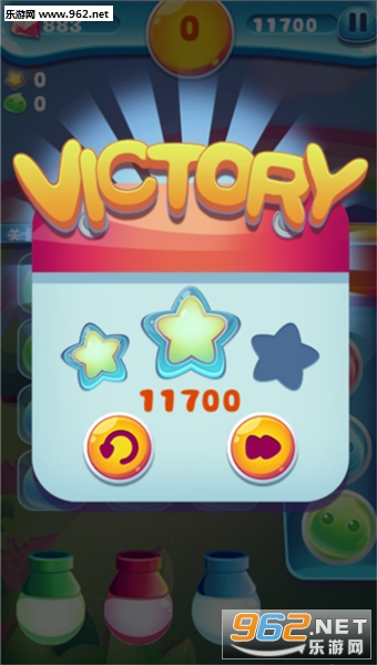 游戏中每一关都有红、蓝、绿三种颜色的大炮和水滴精灵,水滴精灵按三乘四数列从上往下排列;