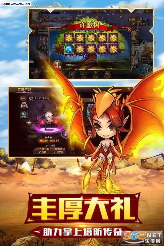 《守望英雄》是一款充满RPG元素的魔幻风格塔防手游。RPG元素和塔防战斗的完美融合,原创“指向性二段技能”释放,打造别样塔防战斗体验! 【登录送好礼 首日黑龙 七日天使】 超值大礼任性送,首日登录即可领取S级英雄黑龙,七日登录更有SS级英雄天使,畅爽福利拿到手软! 【魔幻风格 RPG元素 完美融合】 魔幻风格的美术设计,RPG冒险元素的玩法添加,以及畅快刺激的塔防防守战斗,RPG元素和塔防战斗。