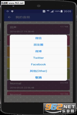 4.分享给您的朋友 您可以直接分享您改变的声音到,,朋友圈,Facebook,Twitter