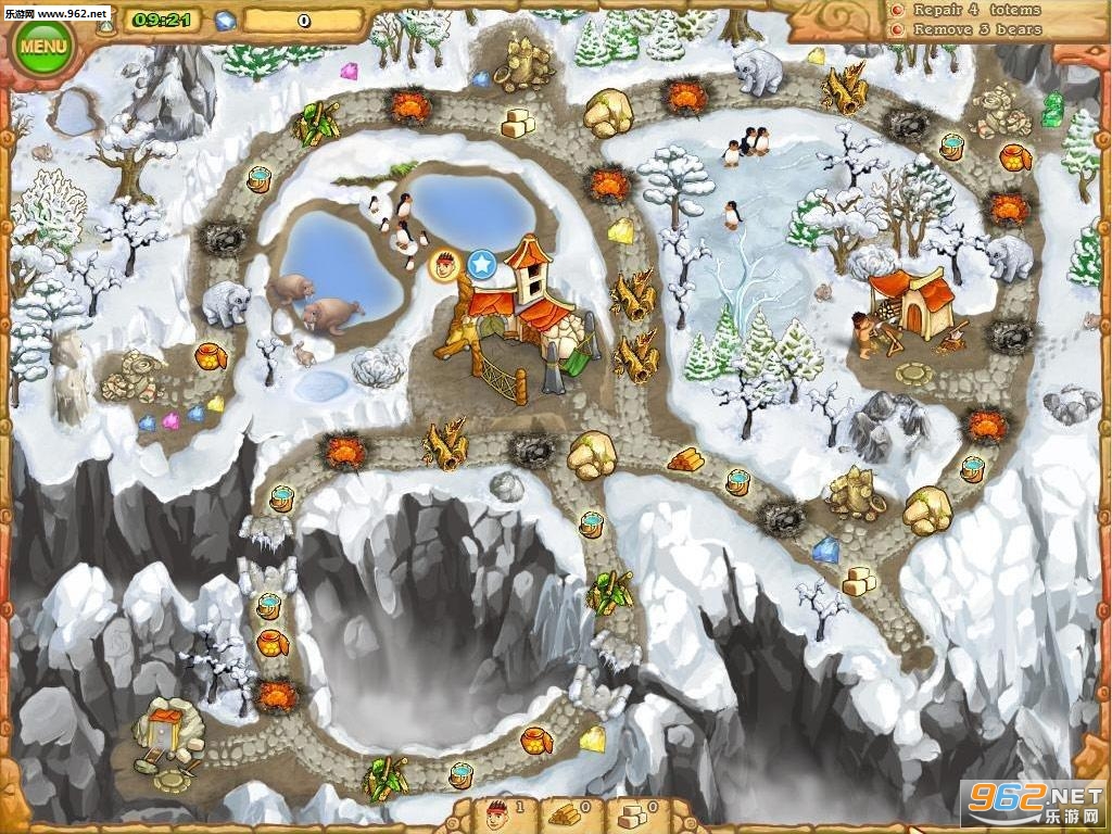 然后就要说说线路的选择了,拾取木材,石头,鱼和水是需要返回营地的,而维修和拾取钻石后可以继续下个动作,所以要明确操作顺序,这样可以有效的节约时间哦,玩这个小编我真正理解了时间就是钻石啊,囧