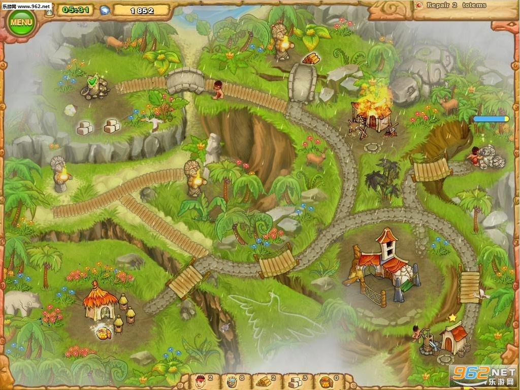 游戏故事比较简单,就是帮助岛上的部落探寻新的地方,但是游戏模式很好玩,通过不断的搜集材料,修复解锁其他更高级的物品。每一种物品都对应着一些可修复的部件,要合理的安排时间,在最短的时间内修复,完成任务。
