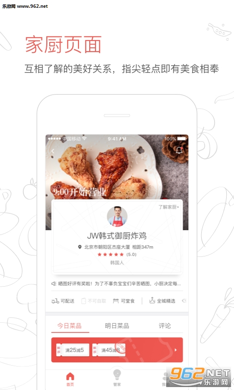 个性定制:家庭厨房可以满足您关于口味、食材的偏好,并将您订购的菜品配送上门!