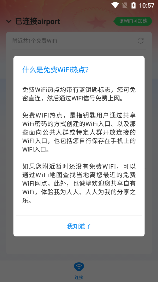 分享:用户可分享已知的Wi-Fi的热点信息也可使用万能钥匙获取其他用户分享的热点信息。