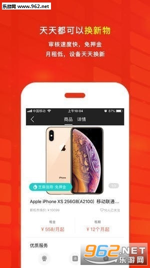 一款专业为个人提供中高端数码、通讯商品与前沿科技产品租赁服务,并且提供租赁物定制,专业为实体企业特别是创业型企业提供办公设备、生产设备、智能终端设备等的租赁服务。