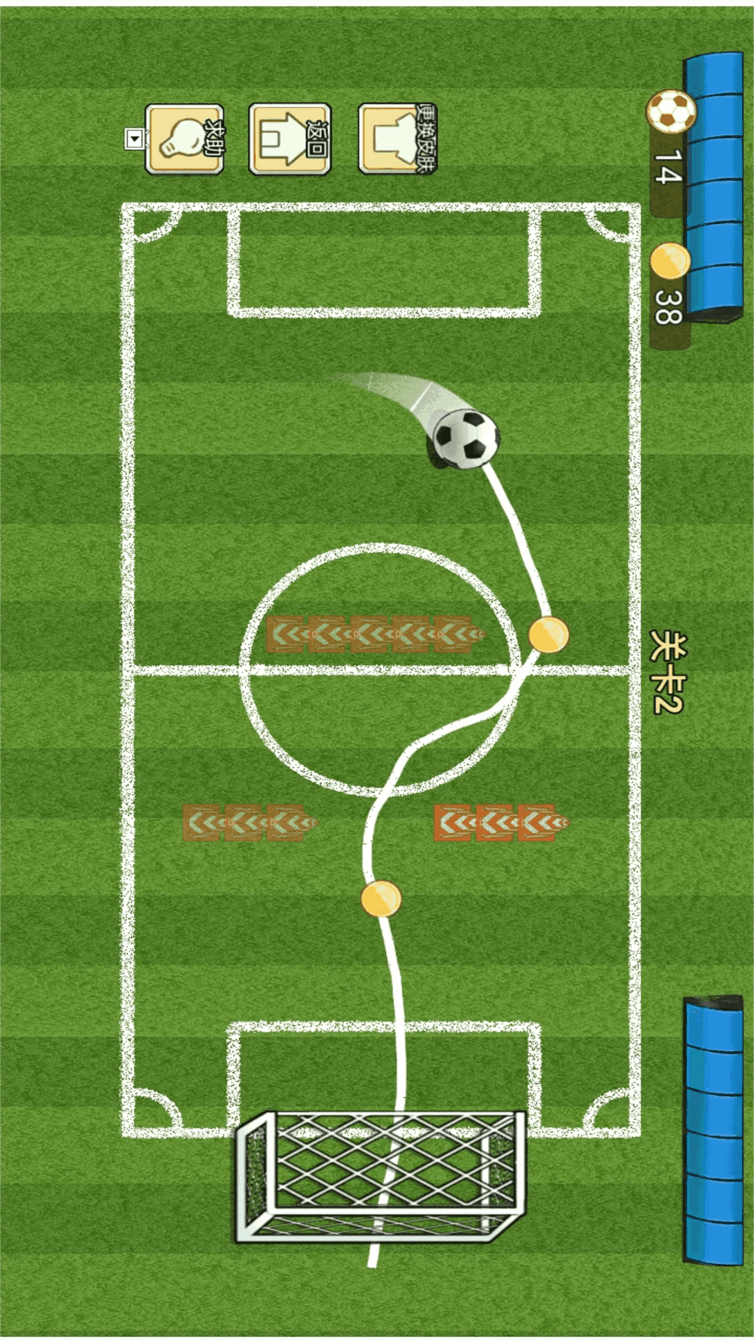 我玩画线足球挑战一击必胜。用笔给足球进行画线,画出足球行走轨迹最终到达球门,不要忘了躲开障碍物的同时还要收集金币哦。