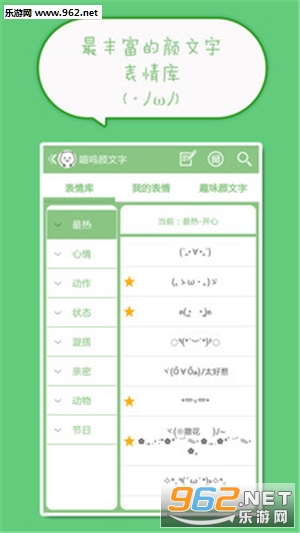 1、史上丰富完善的颜文字表情库,超过其他一切表情应用;