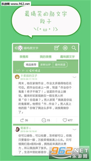 2.新增“精品推荐”和“新鲜出炉”版块,新鲜好玩的颜文字段子;