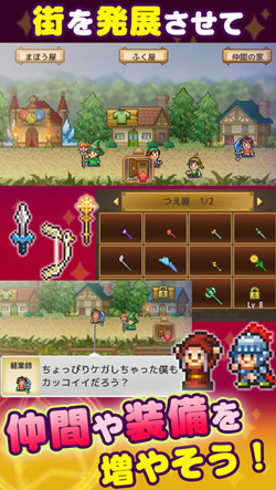 1.游戏依旧是大家熟悉的像素风格,但是玩法却有了很大改变,不再是开罗一贯擅长的模拟经营类玩法,而是变成了一款打怪升级的 RPG。同时,开罗游戏也继续在该作身上尝试 F2P 模式,游戏可以免费下载,附带内购商城,玩家可以通过购买水晶道具加速游戏进程。