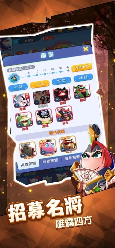 蛋国英雄游戏是一款主打三国题材内容的手机游戏。趣味高效的剧情加上丰富的玩法,收集你喜欢的Q版三国人物,组建队伍一起体验各种各样新的玩法,给你带来更好的体验,赶快来下载试试吧!