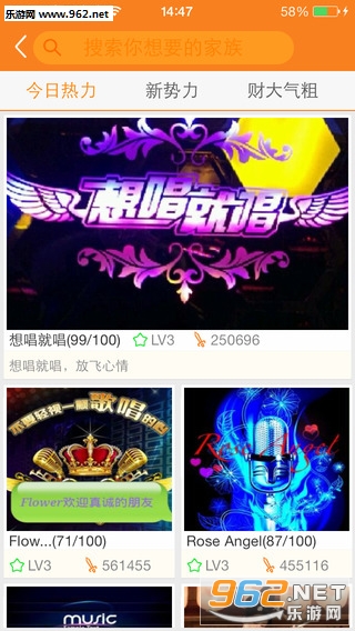 各式family,让你进入麦唱马上就能找到组织。