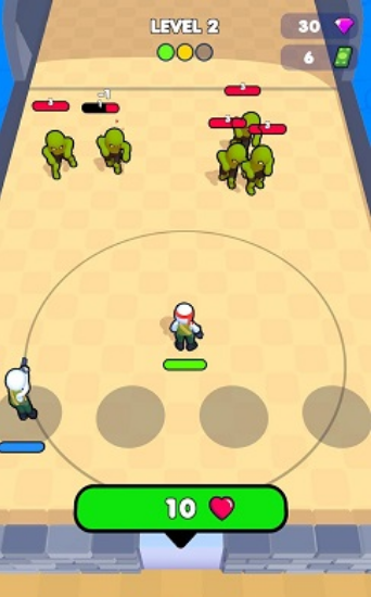 3、升级解锁更高级的关卡让玩家拿出武器对僵尸进行战斗消灭。