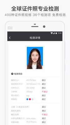 支持从各国签证到各类报名考试在内的近400种证件照规格,36个检测项,免费进行证件照合规性检测:
