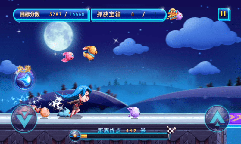 奔跑吧宠物精灵是一个以清新亮丽的风格为主的2D横版跑酷游戏.游戏有超过30个充满挑战的游戏关卡,十几种不同的新玩法,全新清新萌系画风,超多酷炫道具,随时随地让玩家尽情奔跑!