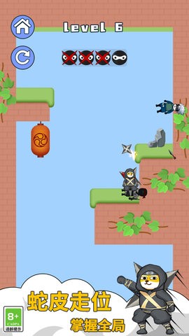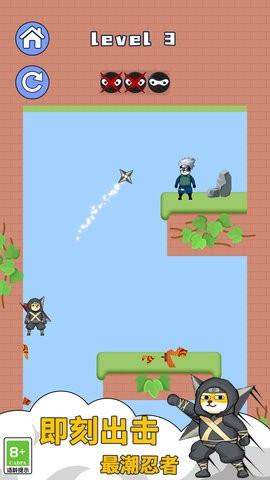 1、在每个关卡中都能体验到精彩的战斗玩法,你要充分发挥飞刀的威力,快速解决敌人。