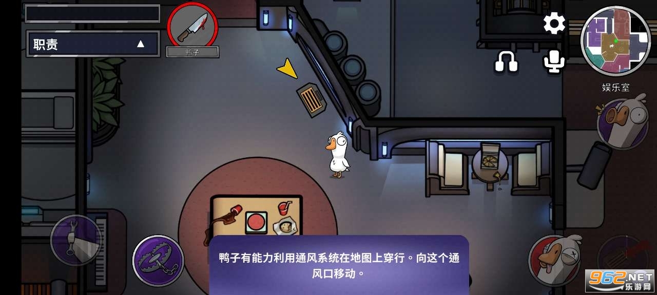 1、基础规则:平民为鹅,杀手为鸭子,在地图自由活动期间鸭子可以直接刀人,刀人有冷却CD,鹅被刀之后会留下尸体(鹅腿)。