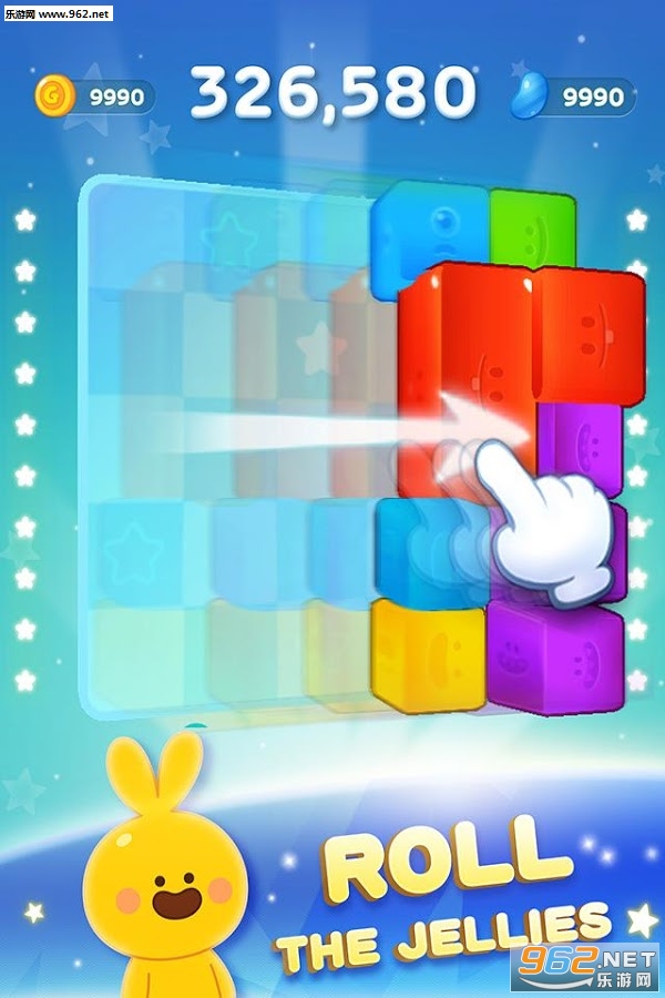 上下左右滑动屏幕,3D魔板发生倾斜,可爱的果冻们在重力的作用下骨碌碌地滚到一边。如果相同颜色的果冻匹配在一起,就会嘭嘭嘭地爆炸。