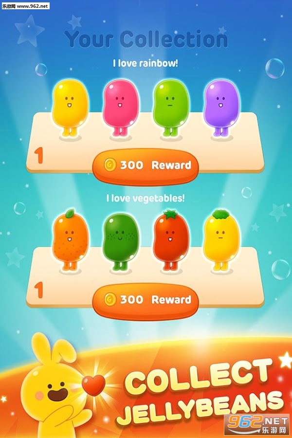 简单的游戏规则:所有果冻向一个方向滚动的时候,只要有3个以上相同颜色的果冻匹配在一起就可以消除它们!
