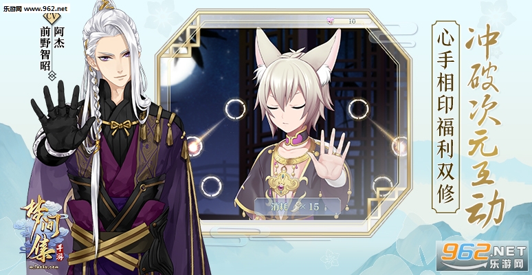 《梦间集》别出心裁地将武侠小说中经典的“左手画圆右手画方”武功植入到「灵犀领悟」这个玩法之中,把角色修炼提升的过程,变成了玩家与角色掌心相触,亲密互动的过程。玩家只要根据屏幕上的提示来与角色一同修炼灵犀,心领神会,一点即通。他们还会随着你的指尖触感做出回应,不经意间撩动你的心弦。