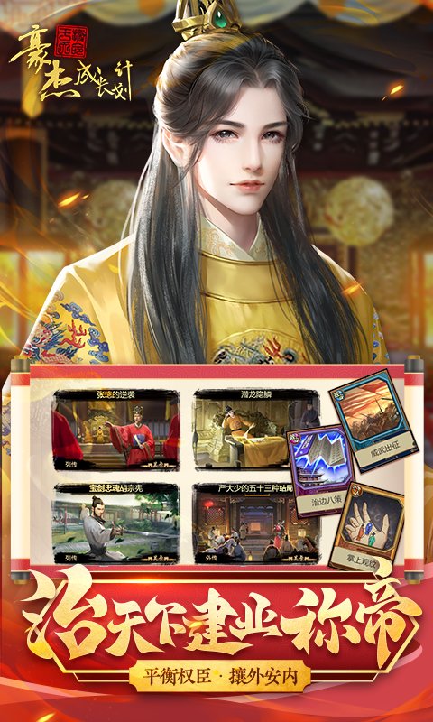 豪杰成长计划是一个策略性的人物养成挑战玩法,在游戏中,从平民到君王,不同的身份剧本带你身临其境;你可以扮演不同朝代的皇帝、名臣、侠客、将领等各路豪杰。探索世界名都,体验不同的豪杰之旅,治理朝政,舌战群儒、闯荡江湖、指挥军队等无尽的新奇玩法助你征途霸业。