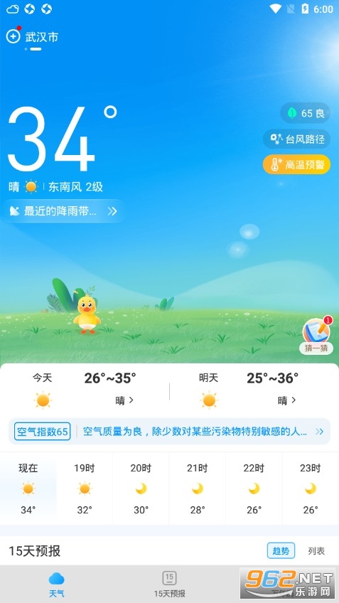 2、【24小时预报】轻松查看24小时内天气状态,温差变化早预防。