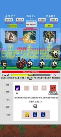 1、这是一块类肉鸽的生存的游戏,合理的技能的搭配和符文让你更强;