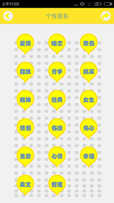 1.按分类浏览个性签名,每个签名均可以复制
