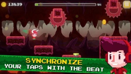 2. 戴上耳机,随着节奏点击屏幕 ,避开障碍物,尽最大努力通过关卡。