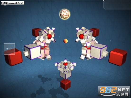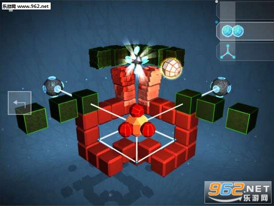 玩家可以反复思考更佳的破坏方式,难度也是一关一关的教学关卡,不同颜色的材质球效果不同,像是撞击绿色粒子球就会造成反方向撞击,红色方体则每次只能撞掉一小块,可伸缩的障碍玻璃片...很烧脑