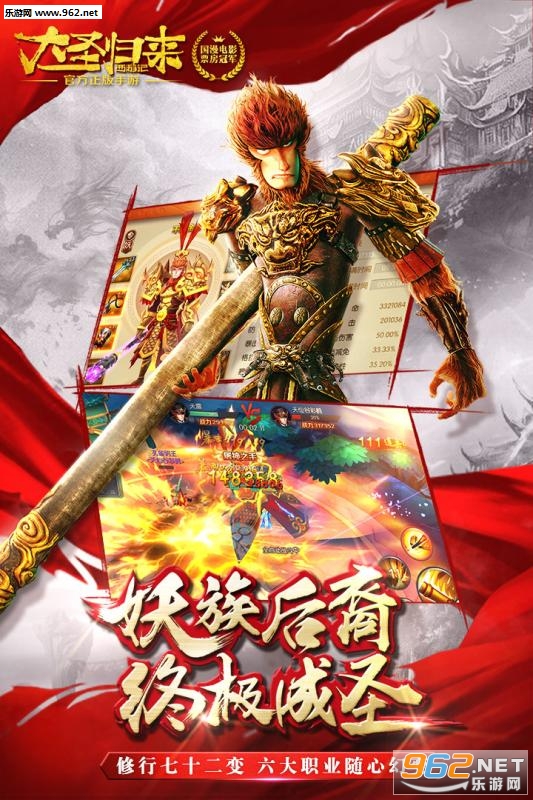 《西游记之大圣归来》是由十月动画正版授权,9.56亿国漫票房冠军电影改编的3D-ARPG动作手游。超人气二次元明星汪东城倾情代言。游戏高度还原电影剧情,全程采用原版配音,呈现最顶级视听盛宴。玩家扮演妖族后裔,修行七十二变,激活六大变身职业,一路斩妖除魔、收服各路英雄助阵,踏上挑战如来、征战三界!诛仙灭神的成圣之路!注册即送首周2万元宝、首月10万元宝,海量福利助你轻松玩转三界,再续大圣传奇!