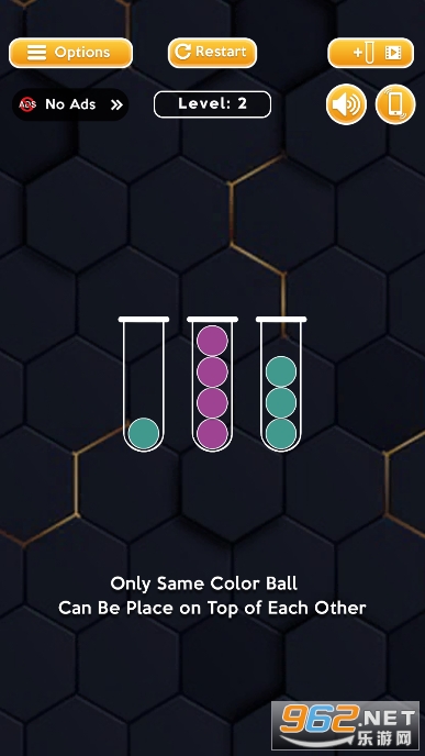 根据相应的颜色将彩球分配到管中拖动3d球以逻辑顺序堆叠它们享受优异的益智游戏!