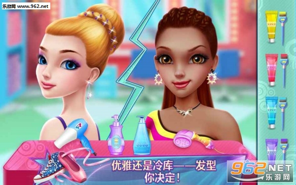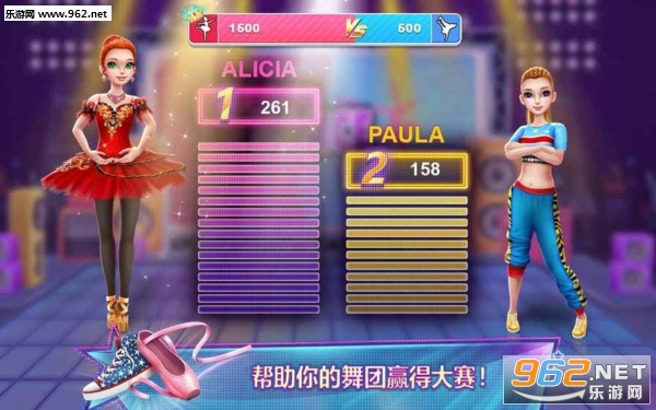 选择您想要加入的舞蹈团,芭蕾舞团或街舞团,开始跳舞吧!芭蕾和街舞都有独到之处——芭蕾舞者非常优雅,街舞舞者超级炫酷。但只有一组可以赢得大赛,统治舞坛——谁会赢呢?!