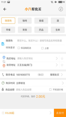 六六必达是一个集代买、代送、代取这一体的现代生活实用APP,能在规定时间内为您代买、代送、代取,给您节省了时间,也给您带去了方便及真诚的服务。操作简单方便,收费经济实惠,适用于生活中的每一个人,为您的生活加快节奏!