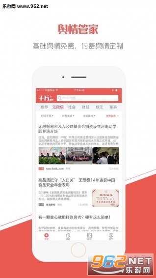 十万+个性化数据服务基于大数据,已成为企业专业的舆情管家,为企业提供多元化舆情服务,是企业贴心的舆情管理工具,随时随地掌控舆情信息,开创了高效优雅的工作方式。十万+实现基础舆情对外开放,可根据企业需求定制深度舆情服务。