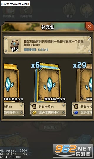 6.每日获得卡包数量调整为6个,获得方式为:每日前3场胜利、每日前3个任务。