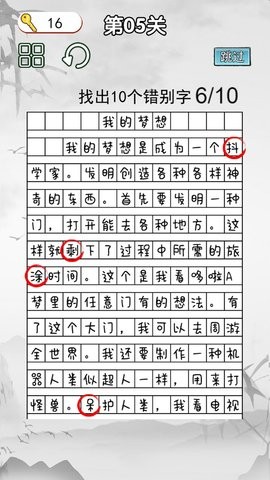 非常的挑战是一款非常好玩的益智游戏,游戏里面玩家需要在不同的关卡里面修改错别字,非常考验玩家对语文知识的积累,在玩游戏的过程中也能学习到更多知识,让你可以尽情享受游戏带来的欢乐,游戏操作简单易上手,感兴趣的小伙伴快来下载吧。
