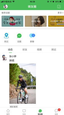 3、骑友圈:分享日常骑行,可用文字、图片、图文、小视频的形式随时随地发现身边的故事