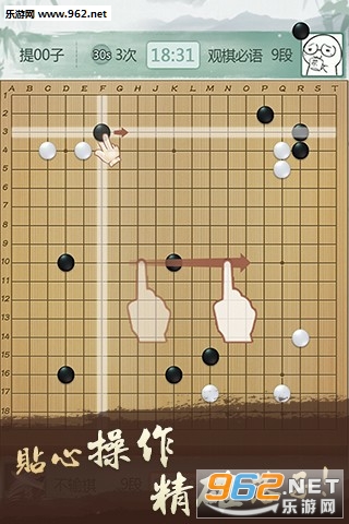 游戏操作简单,上手容易,延续了现实围棋的规则和玩法!双方各执一色棋子,黑先白后,交替下子,每次只能下一子。棋子下在棋盘的点上。棋子下定后,不得向其它点移动。轮流下子是双方的权利,但允许任何一方放弃下子权!