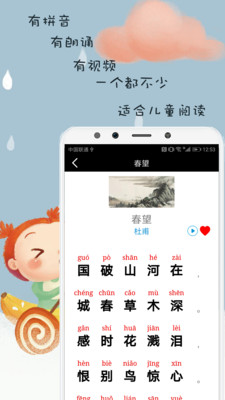 3、诗词加注拼音,语音朗读诗词,适合中小学生使用;
