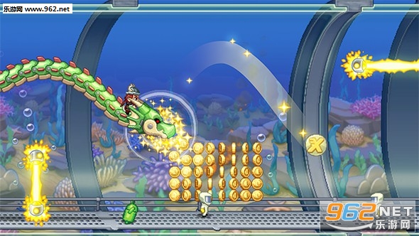 虽然在游戏玩法上更接近于跑酷游戏,但所有包括动作游戏、射击游戏在内的游戏内容,在《疯狂喷气机(Jetpack Joyride)》中都有所体现。