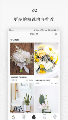 全球达人跨界,每日精选推荐,聚合原创图文视频内容,覆盖花艺教学、园艺设计、家居搭配、芬芳美食、婚嫁指南、诗意生活等不同生活领域,随时随地获取最新定制信息。