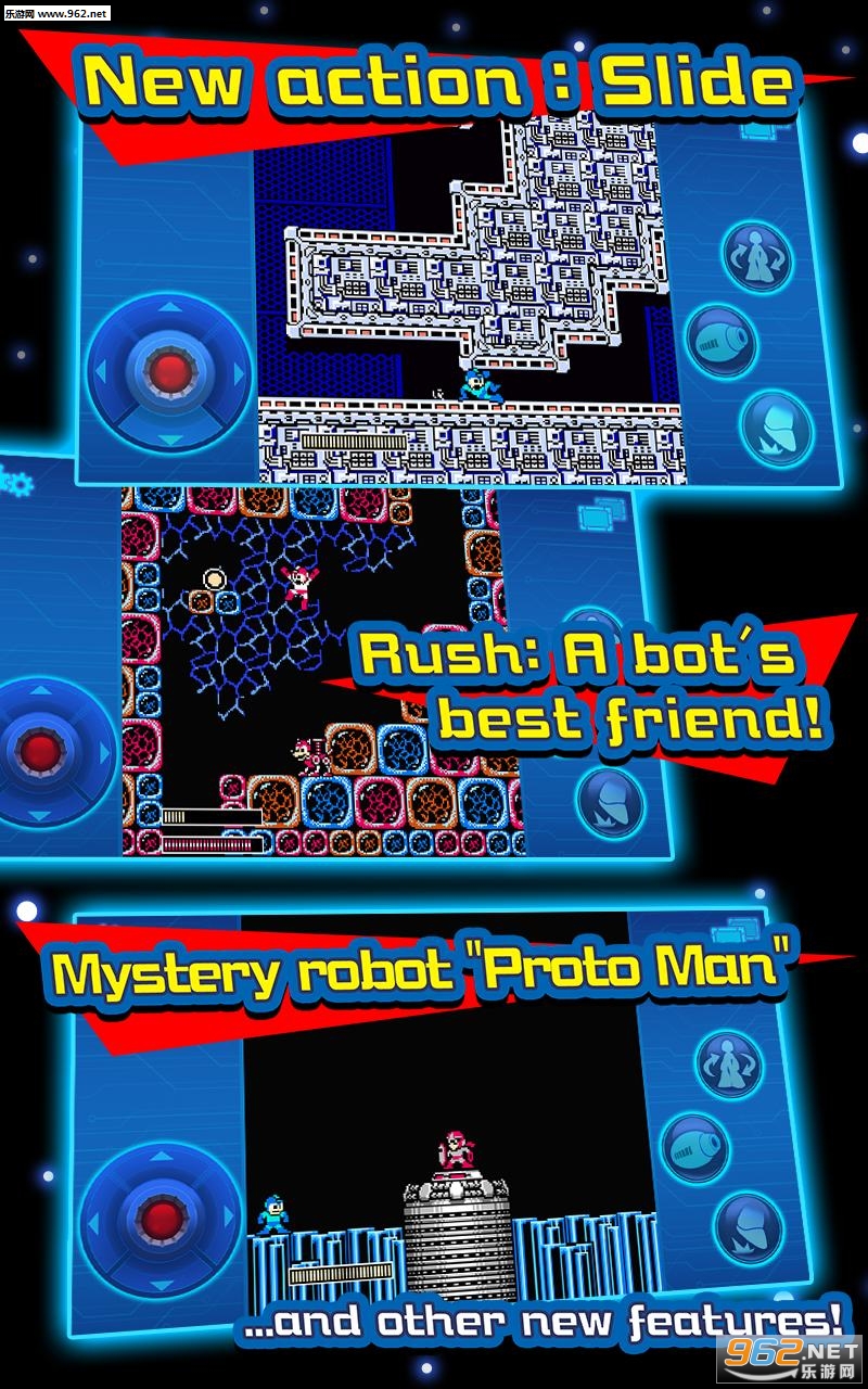 洛克人3手机版株式会社Capcom开发的一款动作类游戏。游戏将原有作品中的内容100%还原到移动平台,打倒BOSS获得特殊武器的系统;画风上依然沿袭原版的8比特风格,4:3的画面比例也没有因手机屏幕尺寸的变化而做出任何妥协,相信不少怀旧玩家,肯定喜欢这个经典的画面,此外,还将针对移动设备的特点加入自动连射系统,而自动蓄气功能也将会添加进游戏里,而且游戏中玩家也可以变更游戏速度,所以操作起来很方便。