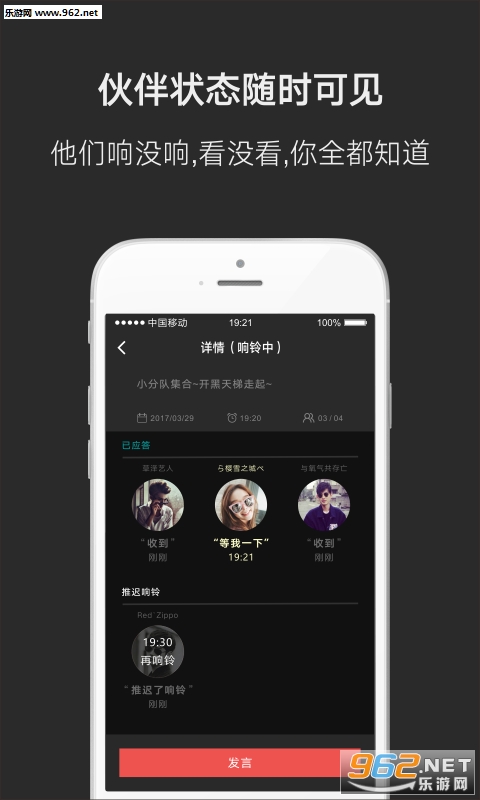 闹钟响铃后,实时同步好友的应答回执,不必再用其他方式确认好友是否收到提醒;