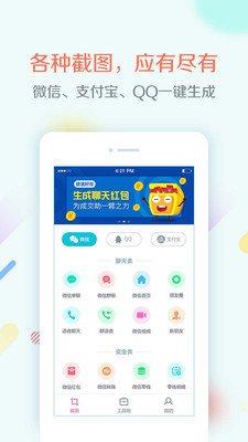 非常好用的任意截图软件, 你可以用它轻松生成对话、红包、零钱的界面,看起来就和真的一模一样哦,小伙伴们看见了一定都会惊呆了。