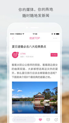 《优谈TOP》第一女性媒体,一款看新闻能赢商品的新闻APP,女人头条专注女人一生(成长、成家、成熟)的新闻媒体;更有权威房树人心理测试,从女性角度看世界,为女性发声音,独家对话业界精英,零距离现场直播。