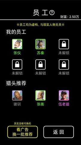 1、这里有很多战国时期的谋士都会助你一臂之力,你会选谁作为你的员工呢?